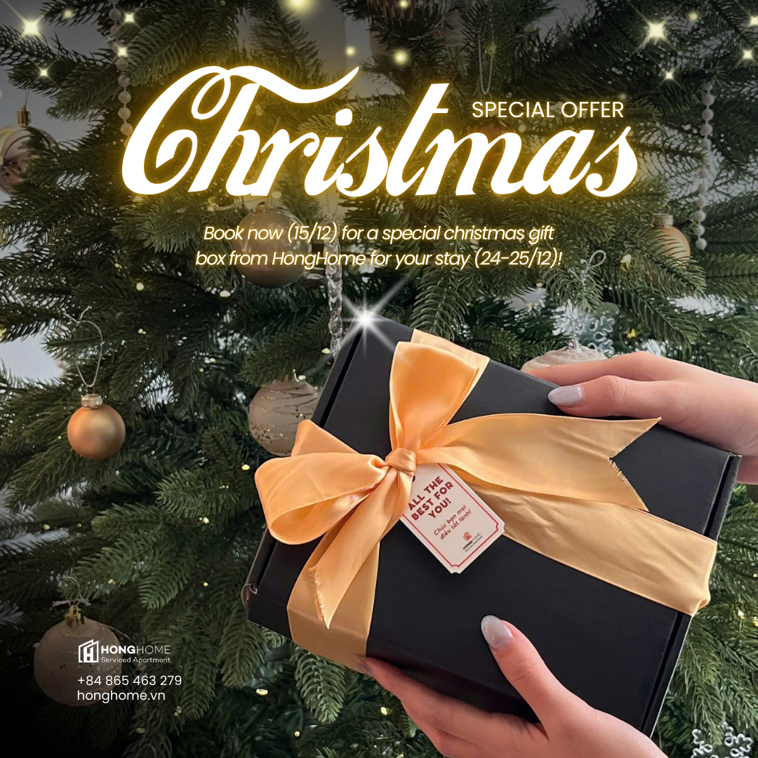 Nhân dịp Giáng Sinh và Năm Mới 2025, HongHome triển khai chương trình quà tặng đặc biệt dành cho khách hàng đặt phòng trong thời gian ưu đãi.