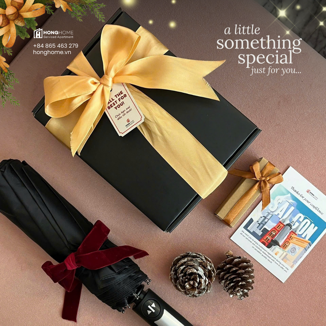 Bộ quà tặng lễ hội được HongHome chuẩn bị riêng cho mùa Giáng Sinh & Năm Mới, như một lời tri ân dành cho khách hàng lựa chọn lưu trú cùng chúng tôi.